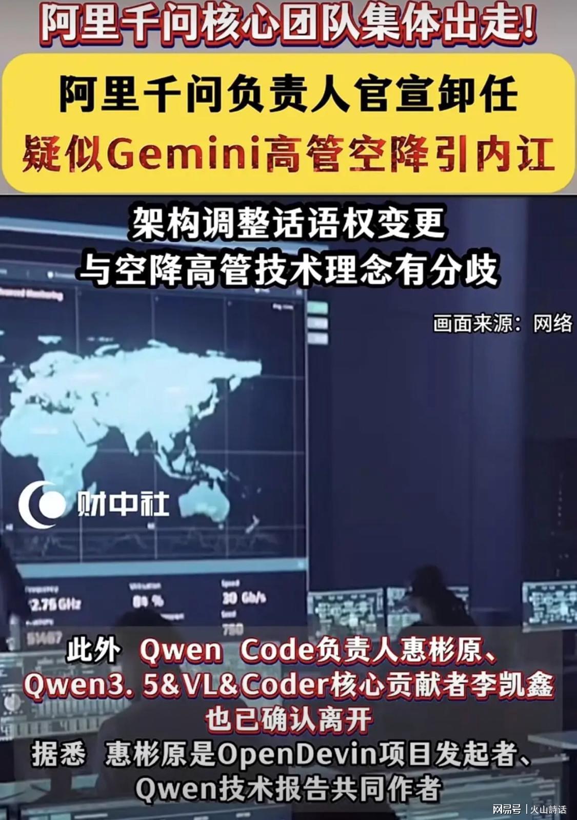 很快,通义紧急开全员会:吴泳铭、蒋芳、周靖人表态流出。据AI圈人士透露,通义当天下午举办了全员大会,高管解答疑问,但总体感觉是没有转机了(林俊旸不会留下来了)。